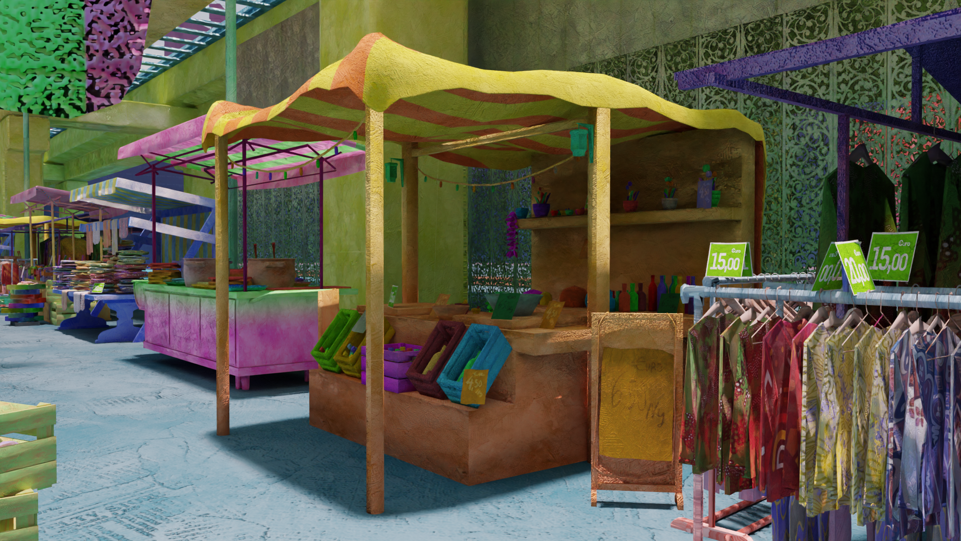 I worked on level building, modeling assets, textures, colors, lighting, camera, rendering.