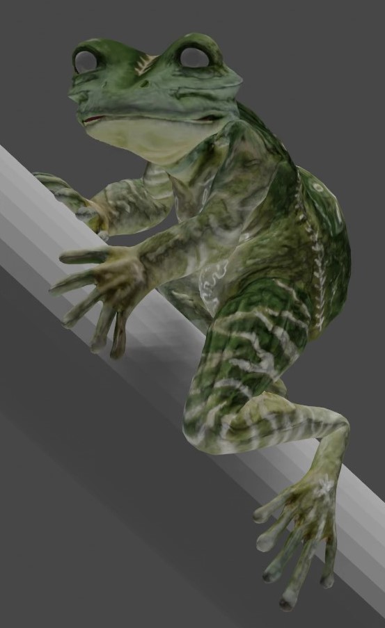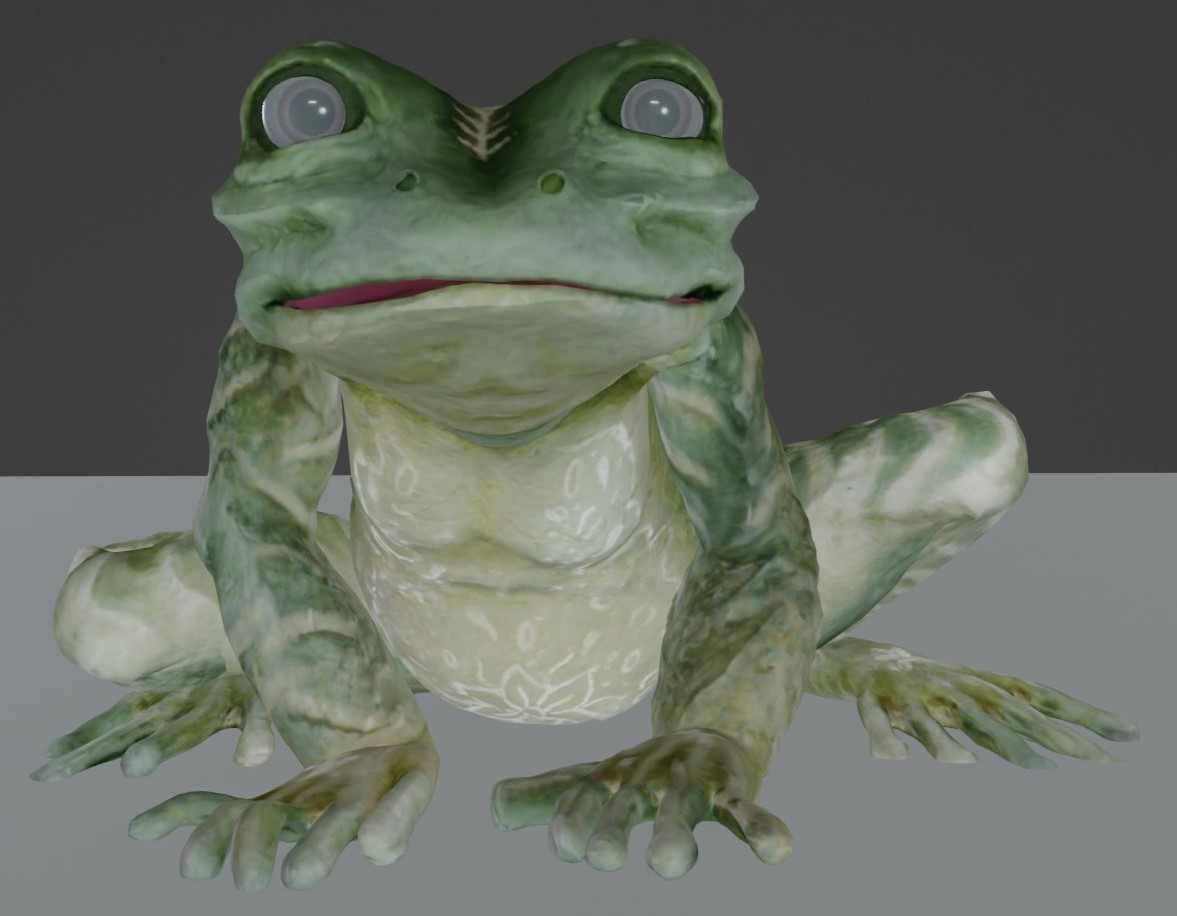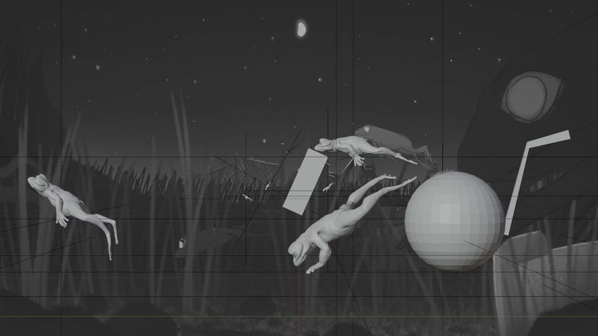 I worked on the animation of the main character, the frog and the buckets, using a Rigify rig.